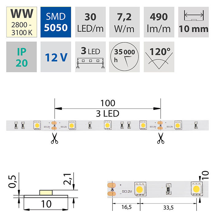 | Jmenovitá životnost L70/B10 při 25 °C | 54000 h |