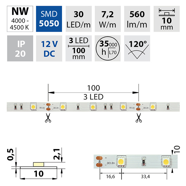 | Počet LED na metr | 30 |