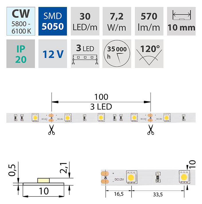 | Počet LED na metr | 30 |