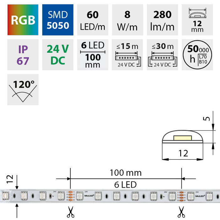 | Jmenovitá životnost L70/B10 při 25 °C | 50000 h |