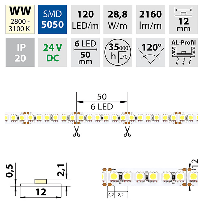 | Počet LED na metr | 120 |