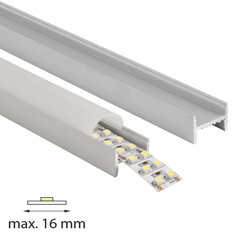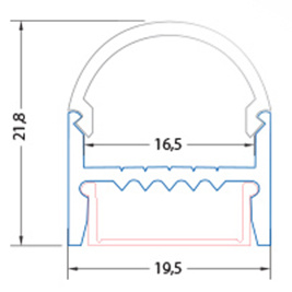 Přisazený hliníkový profil pro LED pásky, rozměry průřezu cca 20x22 mm. Součástí je matný difuzor, který lze do profilu nacvaknout. Tento profil je určen pro krytí a chlazení LED pásků do šíře 16 mm. Upevnění k podkladu lze provést pomocí montážních úchytů, vrutů, lepidel. K profilu lze zakoupit úchyty a koncovky.