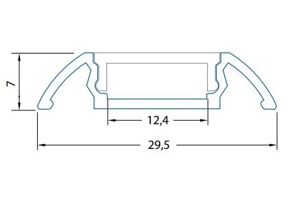 Přisazený hliníkový profil pro LED pásky, rozměry průřezu cca 30x7 mm. Součástí je mléčný difuzor, který lze do profilu nasunout. Tento profil je určen pro krytí a chlazení LED pásků do šíře 12 mm. Upevnění k podkladu lze provést pomocí montážních úchytů, vrutů, lepidel. K profilu lze zakoupit úchyty a koncovky.
