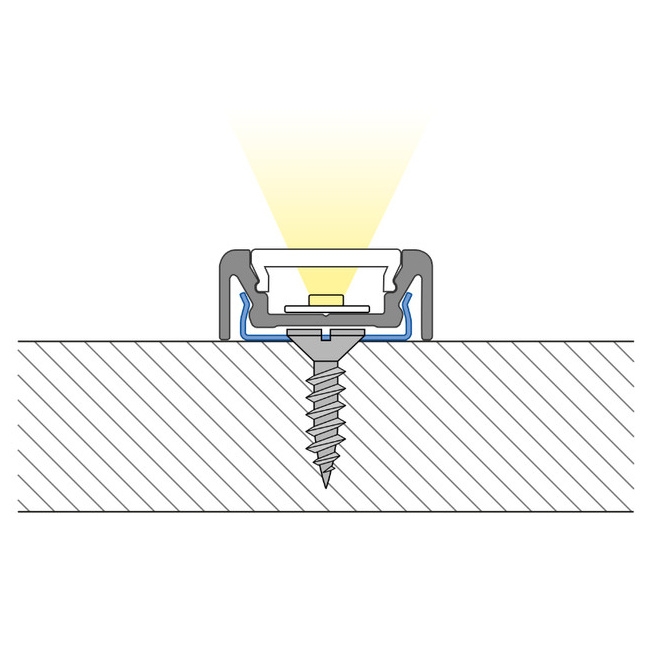 Přisazený hliníkový profil pro LED pásky, rozměry průřezu cca 19x8mm. Součástí je čirý difuzor, který lze do profilu nacvaknout. Tento profil je určen pro krytí a chlazení LED pásků do šíře až 10mm a výkonu max. 19,2W/m. Profil lze upevnit pomocí samostatně prodávaných úchytů, případně jej lze přivrtat nebo přilepit. K profilu lze zakoupit také koncovky. Délka 1m.