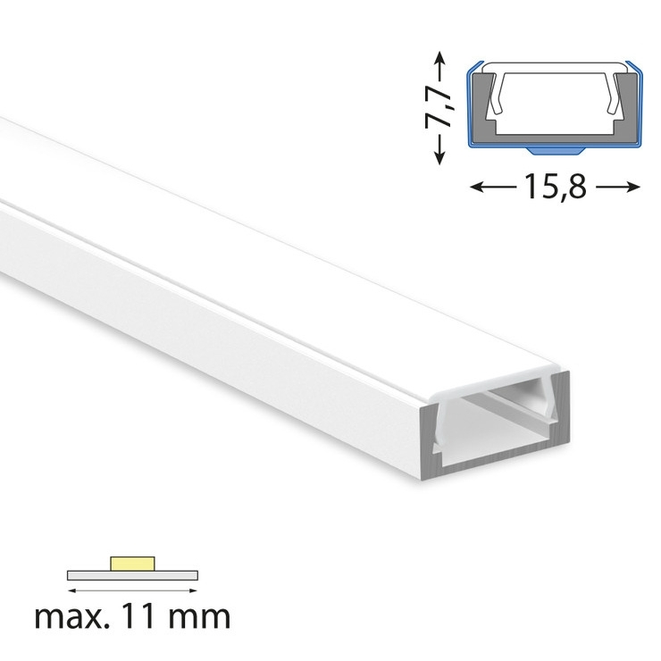 Přisazený hliníkový profil PG2 16x8mm bez difuzoru bílý 2m