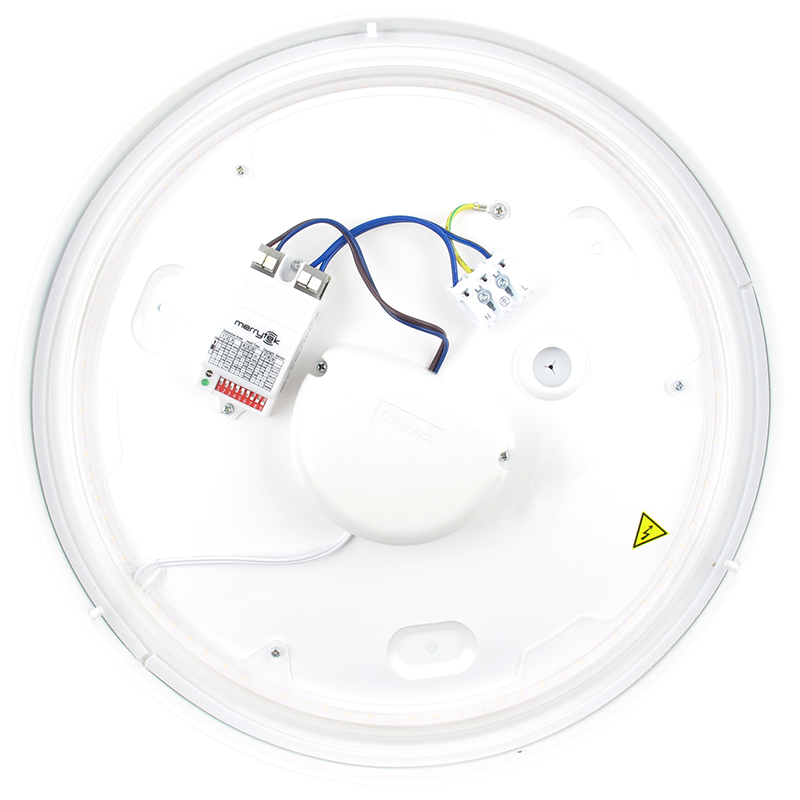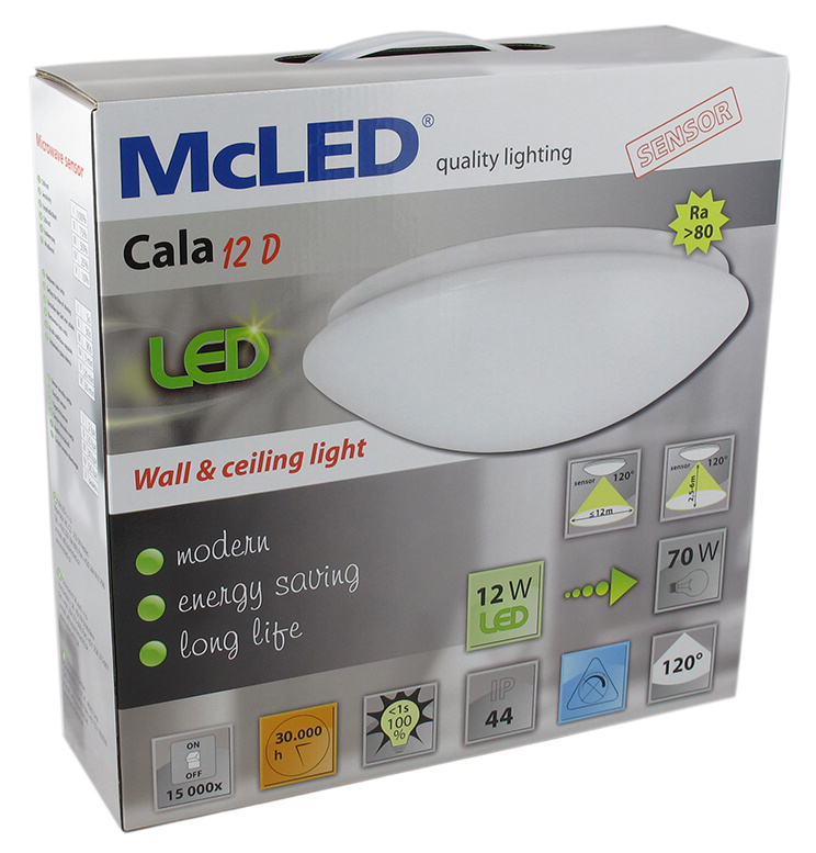 LED stropní a nástěnné svítidlo s MV senzorem 12W (ekvivalent 70W úspora až 82%), 230V, IP44, 2700K - teplá bílá, světelný tok 880lm, vyzařovací úhel 120°, Ra>80, životnost až 30.000h, rozměry ø 280 x 95, materiál plech/plast, nestmívatelné, PF>0,9