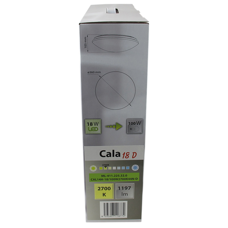 LED stropní a nástěnné svítidlo s MV senzorem 18W (ekvivalent 100W úspora až 82%), 230V, IP44, 2700K - teplá bílá, světelný tok 1320lm, vyzařovací úhel 120°, Ra>80, životnost až 30.000h, rozměry ø 360 x 105, materiál plech/plast, nestmívatelné, PF>0,9