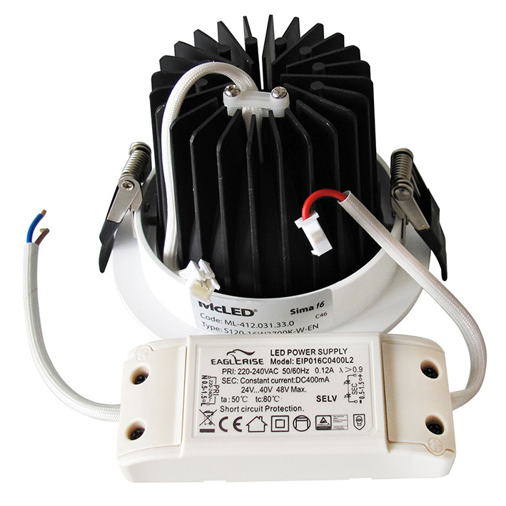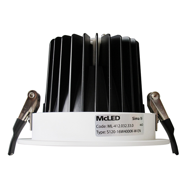 LED podhledové svítidlo 16W - směrovatelné (ekvivalent 100W halogen, úspora až 85%), 230V, IP20, 4000K-neutrální bílá, světelný tok 1380lm, vyzařovací úhel 38°, Ra>80, životnost až 50.000h, rozměry ø120x80, hliník/sklo, nestmívatelné, PF>0,9