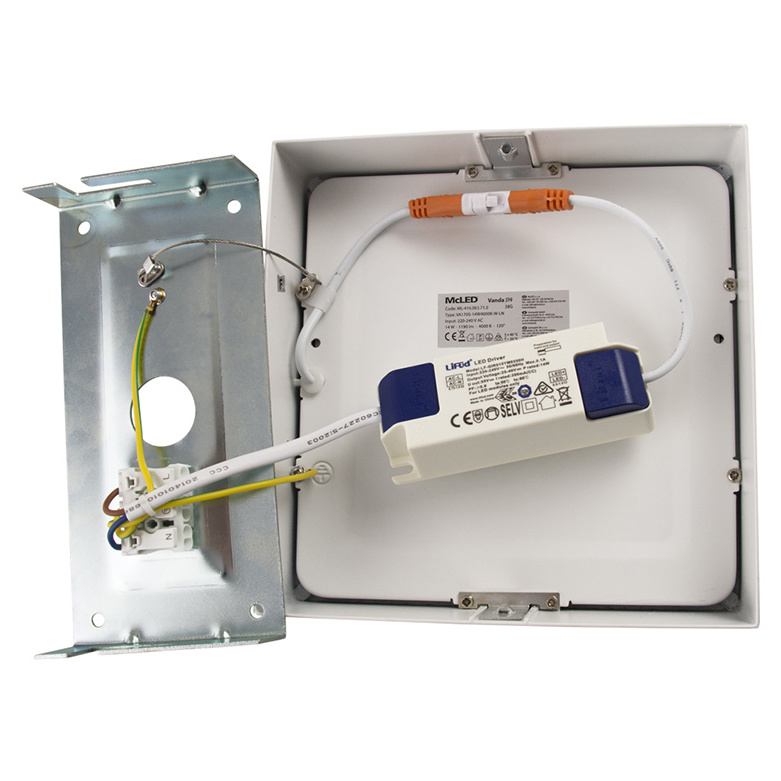 LED přisazené svítidlo Vanda S14, 14W (ekvivalent 100W), 230V, IP20, 3000K - teplá bílá, světelný tok 1100lm, vyzařovací úhel 120°, Ra>80, životnost až 30.000h, rozměry 172x172x42mm, materiál hliník/plast, nestmívatelné, PF>0,9