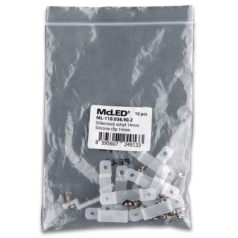 Silikonový úchyt pro pásky IP67 šíře 14mm, balení 1ks vč. vrutů. Doporučujeme použít dle místa instalace 5 - 10 úchytů na metr pásku.
