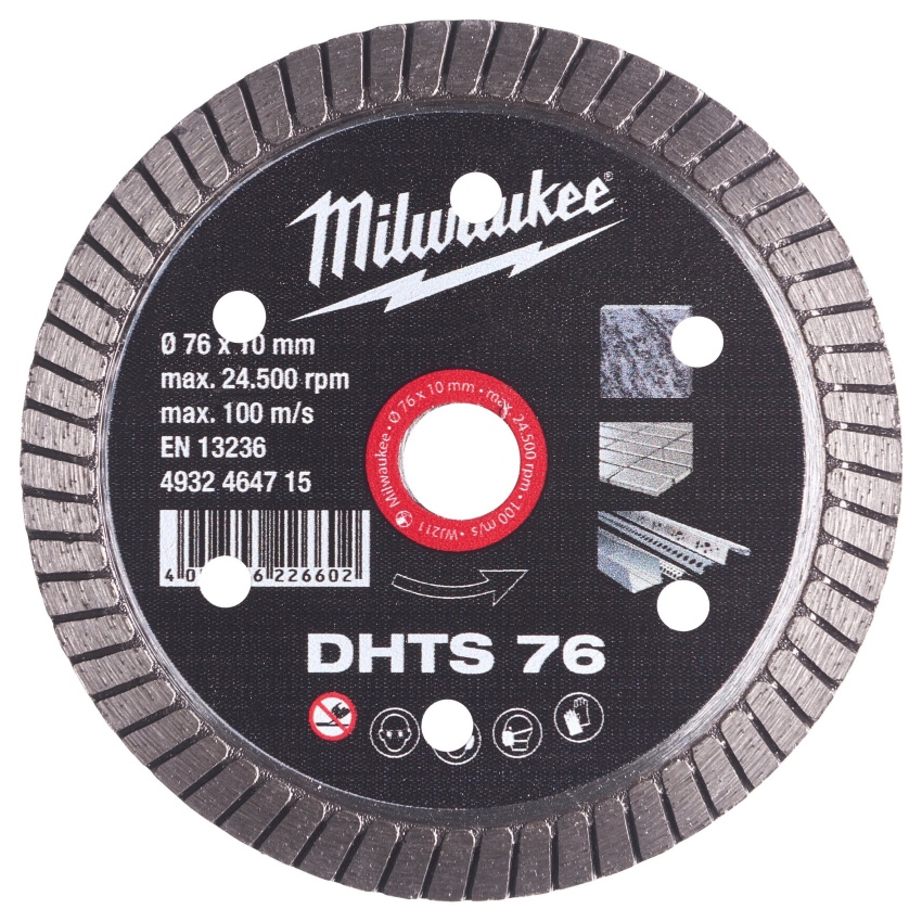 Profesionální kvalita diamantového turbo kotouče Milwaukee DHTS s velmi tenkým tělem pro velmi rychlé a přesné řezání bez pilin. Vhodné pro řezání tenkých materiálů jako je žula, mramorové desky a dlaždice (např. porcelán, kamenina, keramika).