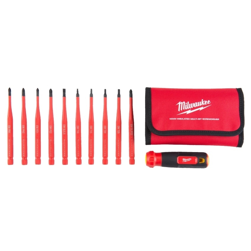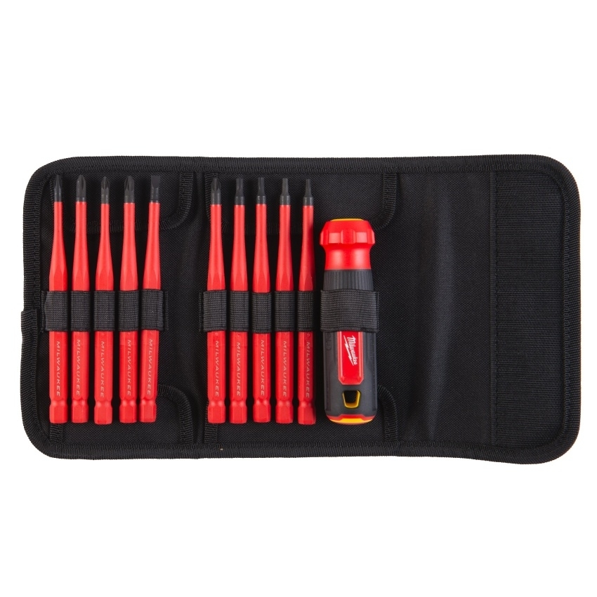 Izolovaný multibitový šroubovák 10 v 1 Milwaukee 4932493657 s certifikací VDE (DIN EN/IEC 60900) pro maximální bezpečnost. Testován na 10 000 V, s garancí použití do 1 000 V.