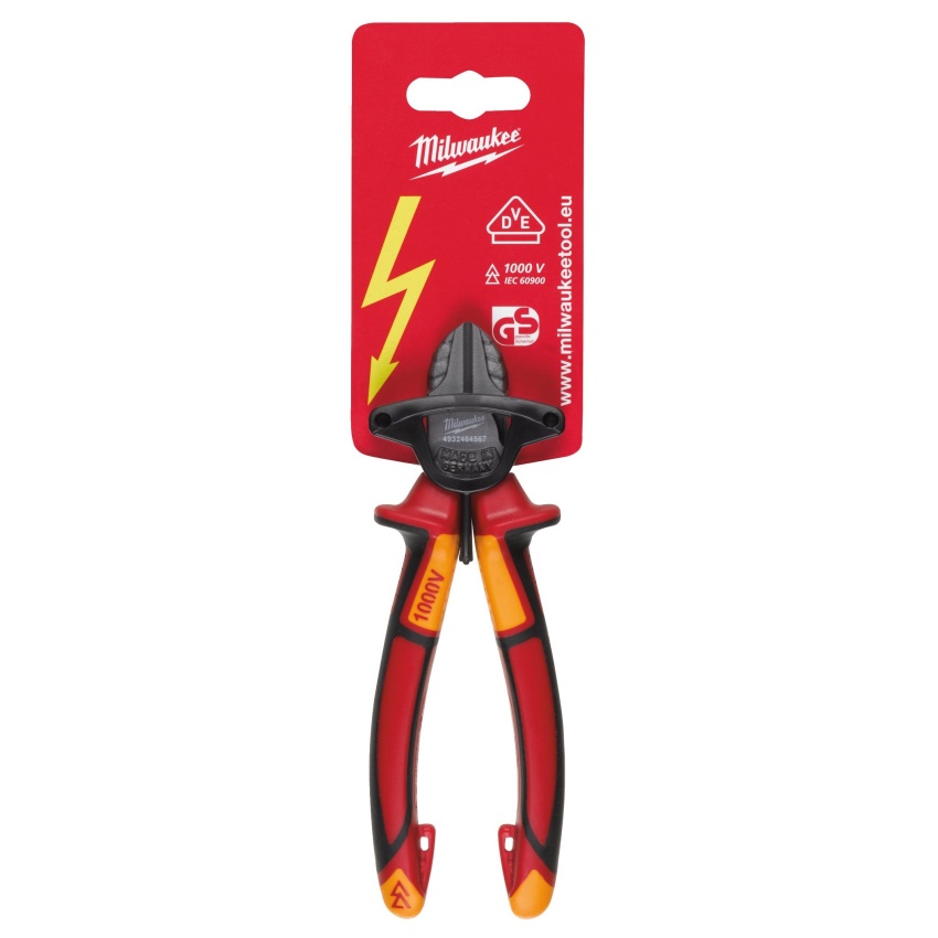Boční štípací izolované kleště Milwaukee velikosti 160 mm. Testováno pod napětím 10 000 V, certifikát do 1 000V.