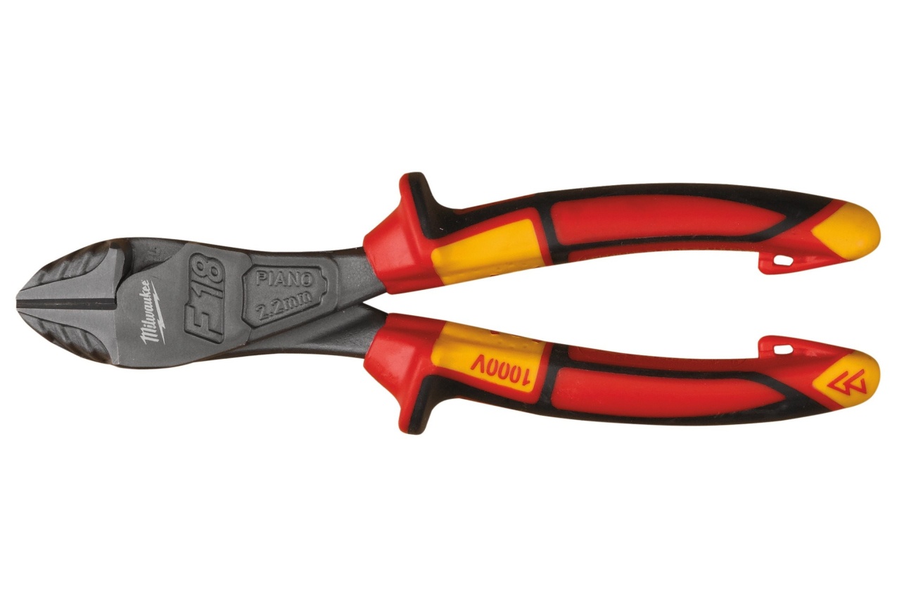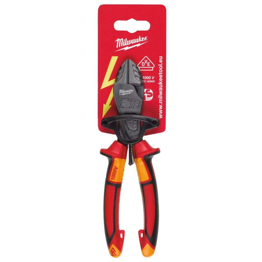 Silové boční štípací izolované kleště Milwaukee HD velikosti 180 mm. Testováno pod napětím 10 000 V, certifikát do 1 000V.