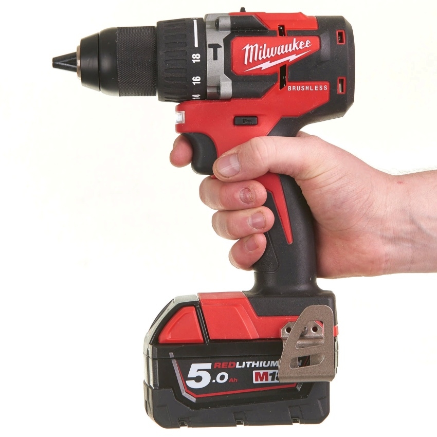 Aku kompaktní bezuhlíková vrtačka Milwaukee M18 CBLPD-202C s příklepem (2,0 Ah)