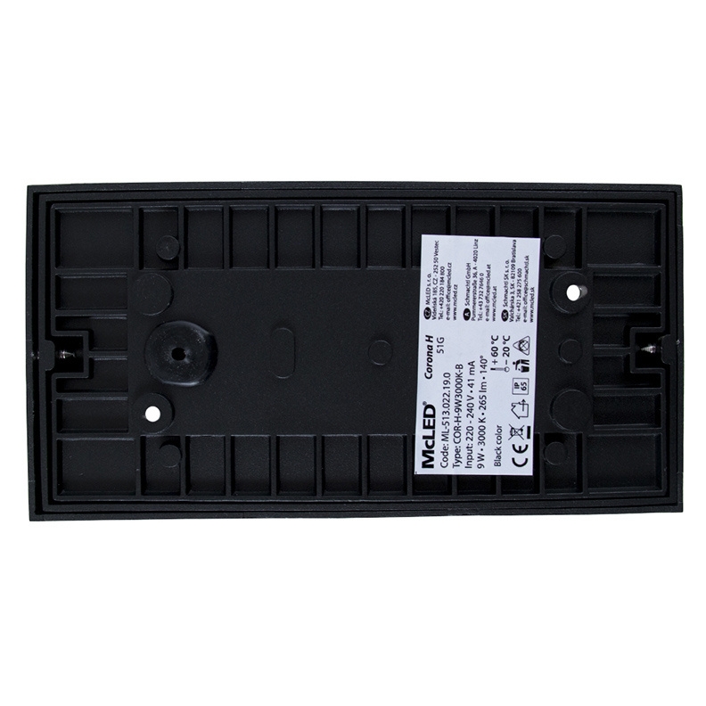 LED nástěnné a fasádní svítidlo Corona H, černá barva, 9W, 230V, IP65, teplá bílá (3000K), světelný tok 265lm, vyzařovací úhel 138°, CRI 80, životnost až 30.000h, rozměry 206 x 106 x 71, materiál hliník/plast, nestmívatelné.