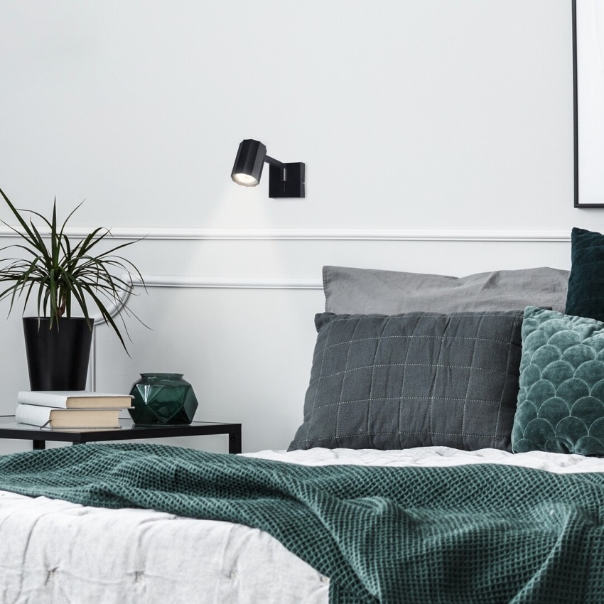 Moderní styl nástěnné lampy Karter z ní činí praktickou volbu do obývacího pokoje nebo ložnice. Matné černé kovové tělo lampy doplňuje válcové hliníkové stínítko ve stejné barvě a svítidlo lze připevnit na zeď pomocí čtvercového ozdobného podstavce. V případě modelu Karter lze nastavit nejen sklon hlavy lampy o 90° nahoru a dolů, ale také rameno, které drží hlavu lampy a vychází z ozdobného podstavce, lze otáčet do stran. Díky této výjimečné flexibilitě můžete světlo nástěnné svítilny ovládat podle svých představ. Svítidlo Karter lze použít s jedním světelným zdrojem s maximálním příkonem do 5 W, typ patice GU10. V závislosti na vašem vkusu a místě instalace si můžete vybrat zdroj teplého nebo přirozeného bílého světla. Rozměry svítidla s vypínačem jsou následující: vzdálenost od stěny 230 mm, instalační průměr 90 mm, průměr stínítka 50 mm. Tento model se dodává bez světelného zdroje.