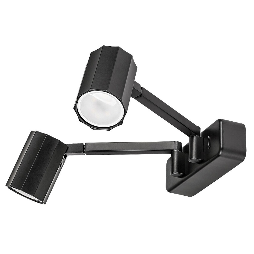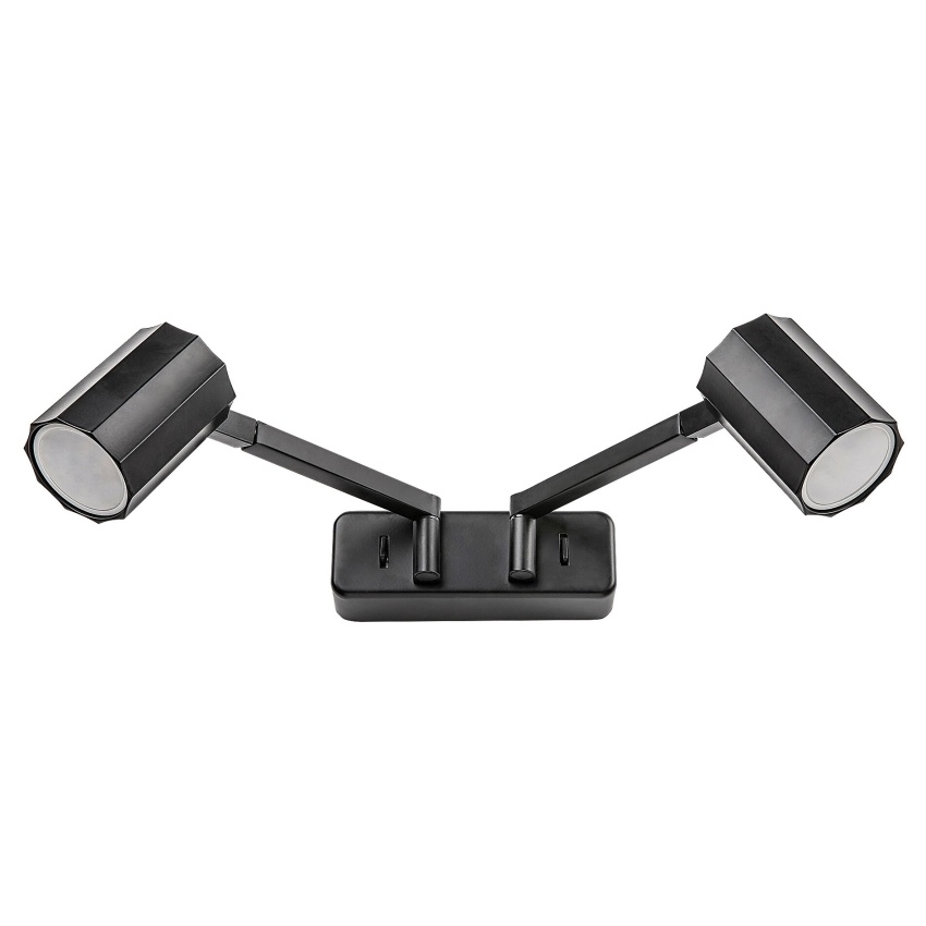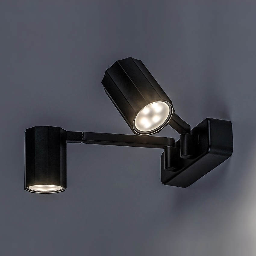 Karter - Pohyblivé nástěnné svítidlo Karter v moderním stylu je praktickou volbou do obývacího pokoje nebo ložnice. Matné černé kovové svítidlo je doplněno válcovými hliníkovými stínítky ve stejné barvě a lze jej připevnit na zeď pomocí obdélníkového, horizontálně namontovaného ozdobného podstavce.