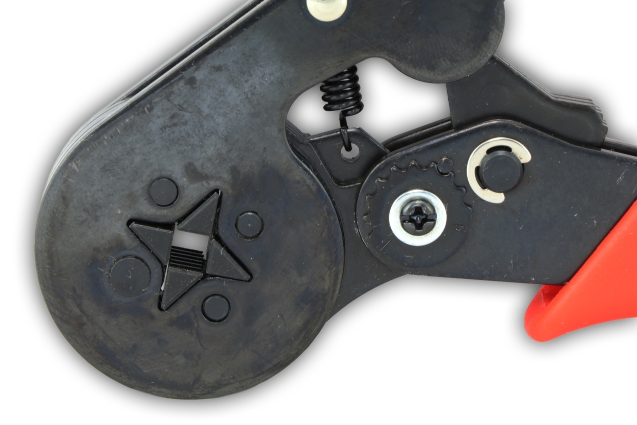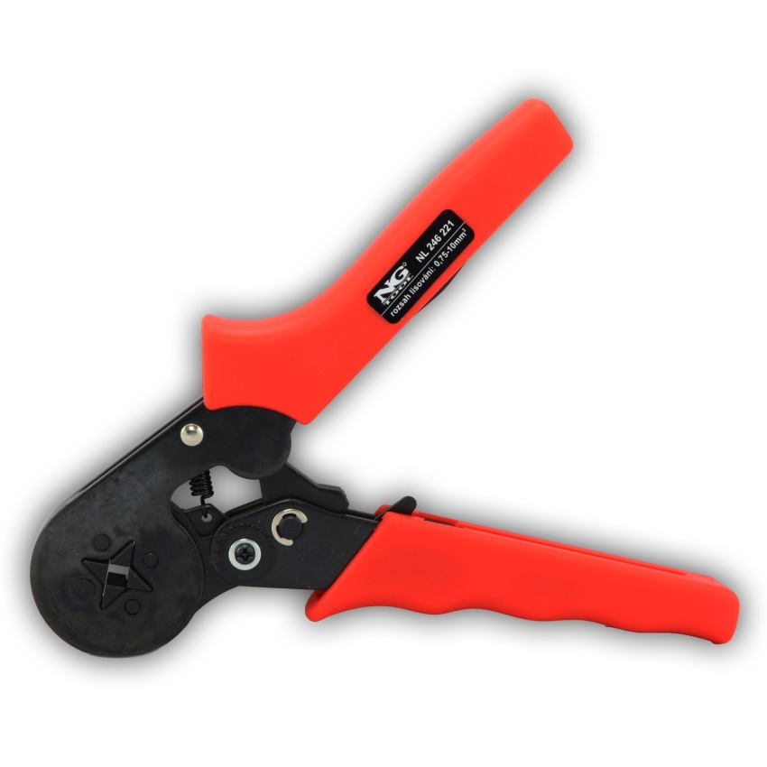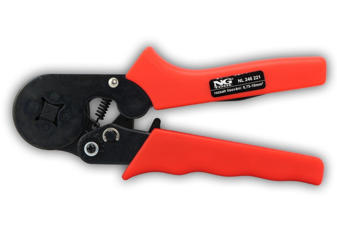 Univerzální lisovací kleště s ráčnovým převodem pro pohodlné a snadné lisování ukončovacích kabelových dutinek s automatickým přizpůsobením průřezu lisování. Komfortní rukojeť speciálně tvarovaná proti sklouznutí ruky směrem k čelisti.