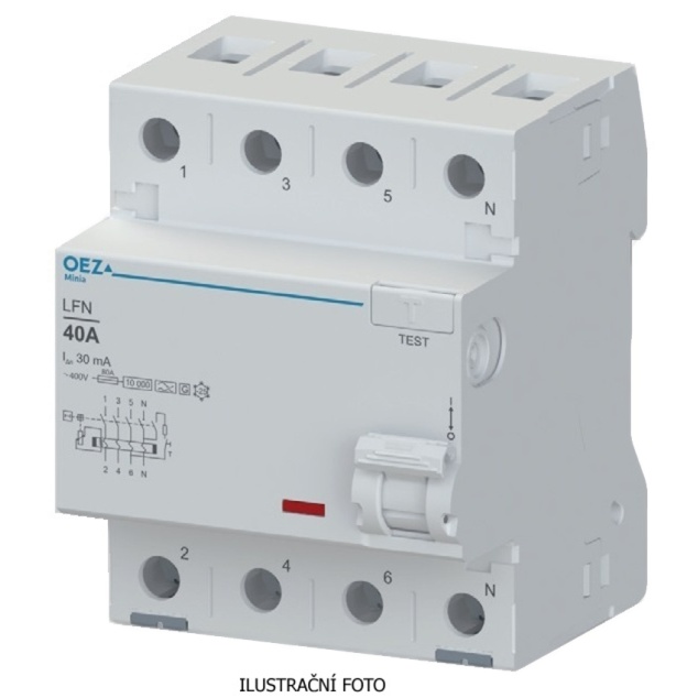 In 25 A, Ue AC 230/400 V, Idn 30 mA, 4pól, Inc 10 kA, typ A, provedení G