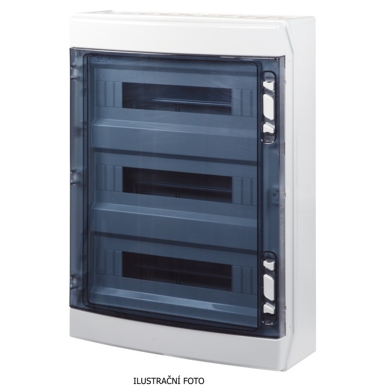 pro nástěnnou montáž, krytí IP65, průhledné dveře, počet řad 3, počet modulů v řadě 12, PE+N, barva šedá, materiál ABS