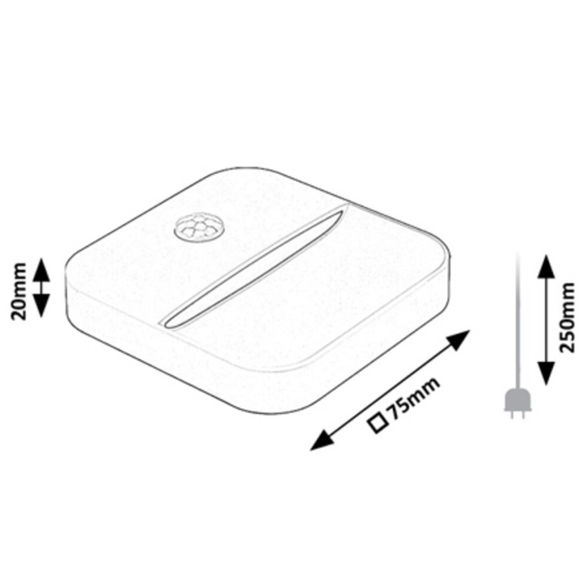 Noční světlo Ciro v moderním stylu se senzorem pohybu je praktickým řešením do obývacího pokoje, ložnice nebo dětského pokoje. Diskrétní světlo tohoto modelu, které je celé vyrobeno z plastu se zaoblenými rohy, může zpříjemnit usínání a poskytnout pomoc a bezpečnost dětem, pokud se potřebují v noci v důsledku něčeho vzbudit. Ciro má zabudovaný LED světelný zdroj s příkonem 0,15 W, jasem 5 lumenů se stínítkem, 15 lumenů bez stínítka a životností 25 000 hodin. Lampa má teplotu barvy 3000 K, tzn. svítí teplým bílým světlem. Snímač pohybu detekuje pohyb ze vzdálenosti 3– 7 metrů při úhlu záběru 120° a podle podmínek upravuje jas světla lampy. Ciro má také baterii s napětím 3,7 V a kapacitou 300 mAh. Lampu lze nabíjet pomocí USB kabelu. Noční světlo s vypínačem má šířku 75 mm, výšku 20 mm a délku kabelu 250 mm.
