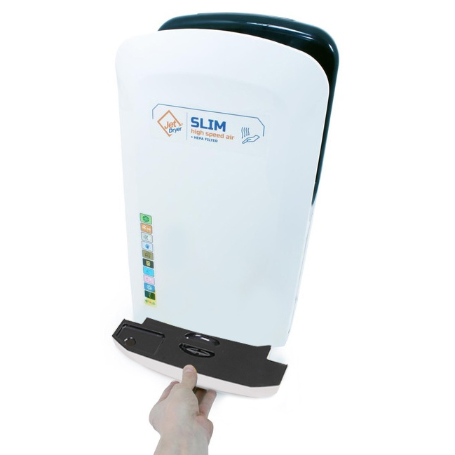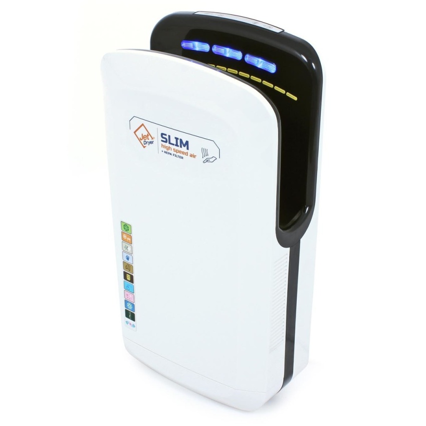 Slim je nejmenší tryskový vysoušeč z Řady Jet Dryer. Je ideální tam, kde jste limitováni prostorem. I přes malé rozměry vás ohromí svým sušícím výkonem.