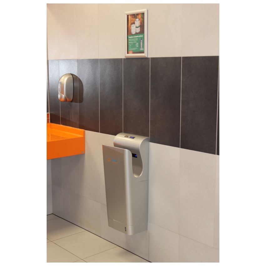 Deset vteřin stačí k celkovému osušení rukou a díky tomu můžete ušetřit spoustu výdajů za elektrickou energii a papírové utěrky. Vaše prostory toalet budou navíc díky tryskovým vysoušečům vypadat mnohem elegantněji a návštěvníkům tak připravíte pocit vyššího komfortu.