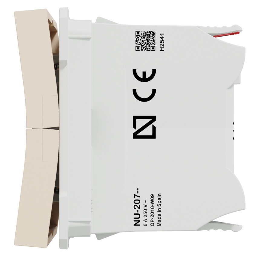 Schneider Electric Nová Unica žaluziové tlačítko NU320744 je mechanismus v barvě béžové Připojovací svorky tohoto žaluziového tlačítka jsou bezšroubové. Způsob upevnění tohoto zařízení je nacvaknutí. Šířka 45 mm, výška 45 mm, hloubka 44,35 mm, hloubka zapuštění 32,8 mm, A výrobek váží 0,0331 kg. Se 2 moduly. Je s orientační kontrolkou bez LED diody. Jedná se o 3polohové žaluziové tlačítko. Tento výrobek se prodává v 10 kusech. Získal také certifikát AENOR, CE, EAC, NF. Je vyrobeno z Cu. Zn15, PBT (polybutylentereftalát) GF30, PC (polykarbonát) GF10 FR, termoplastický materiál stabilizovaný ABS-UV, je toto roletové tlačítko spolehlivé a odolné. Kromě toho dosahuje úrovně ochrany IK04, která může pomoci chránit před nárazem. Navíc splňuje normu IEC 60669-1, směrnici LV, Ro. HS. Také je šetrné k životnímu prostředí, přičemž je odolné vůči UV záření, acetonu, alkoholu, čpavku, bělidlu, tekutému mýdlu, oleji, benzínu, kapalině na čištění oken. Dielektrická pevnost, což je míra elektrické pevnosti materiálu jako izolantu, je 2000 V. A jeho jmenovitý proud je 6A. Toto žaluziové tlačítko také neobsahuje SVHC (látky vzbuzující mimořádné obavy). Nová Unica zahrnuje sadu nových designů, barev a materiálů. Uživatelé mohou těžit z krásného designu, který odpovídá jejich stylu, a inovativních produktů. Nová Unica je navržena s chytrými funkcemi, které jsou flexibilní, snadno pochopitelné a rychle se instalují a poskytují řešení pro všechny požadavky zákazníků.