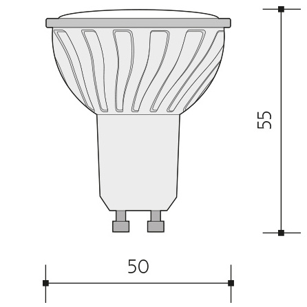 Moderní LED žárovka s paticí GU10 značky PANLUX vyznačující se vysokou životností a nízkou spotřebou.