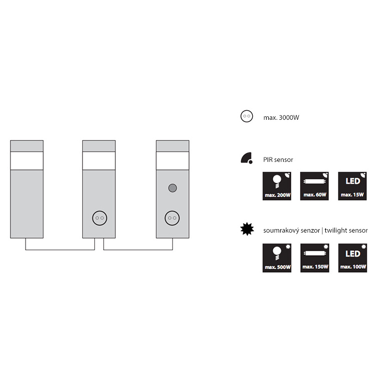 | Světelný zdroj | Univerzální žárovka/úsporná žárovka |