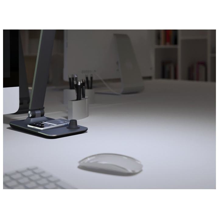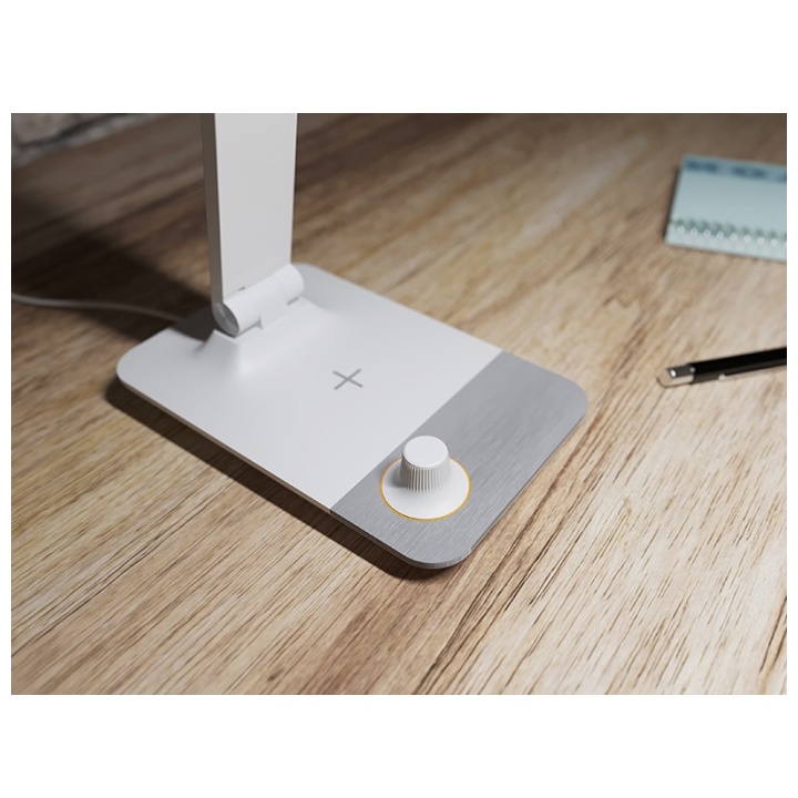 Mobilní telefon stačí položit na podstavec lampy a telefon se začne automaticky nabíjet (zařízení musí podporovat bezdrátové indukční nabíjení).