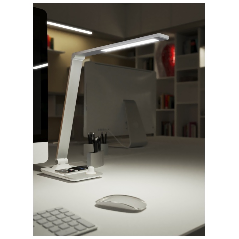 Stolní LED lampička MASTER s integrovanou bezdrátovou nabíječkou, bílá