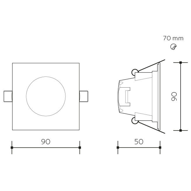 Pevný LED podhled SPOTLIGHT IP65 SQUARE bodovka, stříbrná broušená - teplá