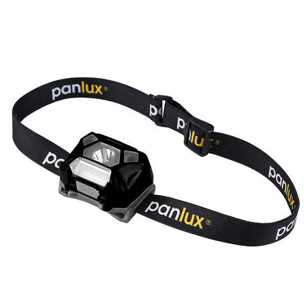Nabíjecí čelovka PANLUX s integrovanou baterií, 6 režimy svícení (bílé a červené světlo) a senzorem pro ovládání mávnutím ruky.