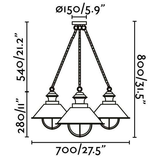 Závěsné svítidlo NAÚTICA španělské designové značky FARO je určené pro tři úsporné žárovky s objímkou E27 o maximálním výkonu 11W.