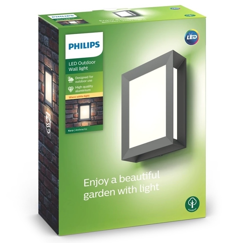 LED Venkovní nástěnné svítidlo Philips KARP 17293/93/16 1x6W 600lm 2700K IP44 antracitové