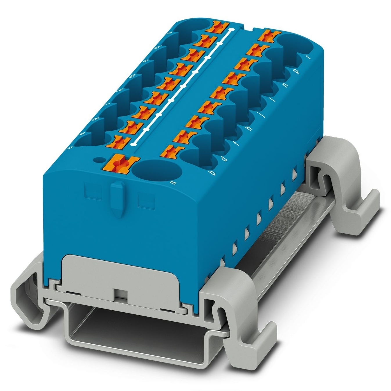 Blok rozvodek, jmenovité napětí: 800 V, jmenovitý proud: 32 A, typ připojení: Svorky Push-in, Svorky Push-in, počet přípojek: 19, průřez: 0,2 mm² - 6 mm², AWG: 24 - 10, šířka: 64,8 mm, barva: modrá, způsob montáže: NS 35/7,5, NS 35/15