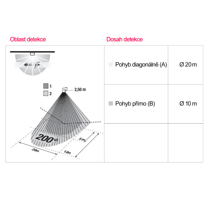 Oblast detekce: rozsah snímání 200°, sensor otočný horizontálně +/- 90°