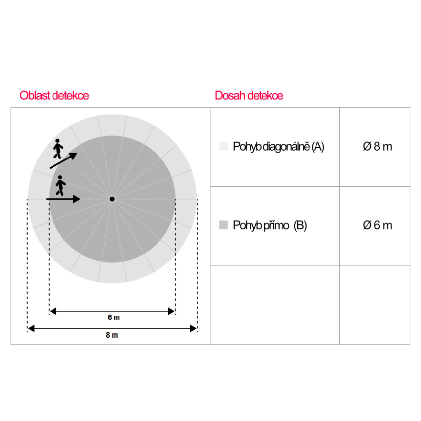 | Detekční vzdálenost | 8 m |