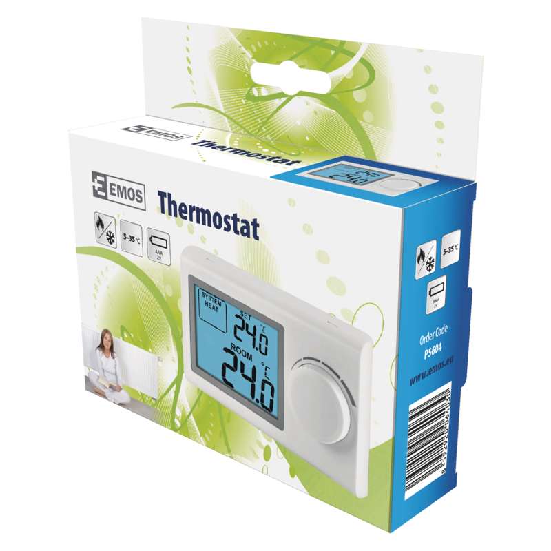 Digitální termostat v bílé barvě a s rozměry 30 × 120 × 77 mm se hodí do každého interiéru.