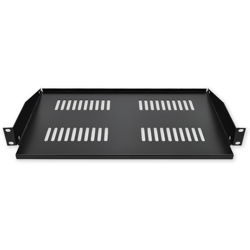 Polička 19" s perforací, hloubka 250 mm, výška 1U, montáž do předních lišt s nosností do 40 kg.