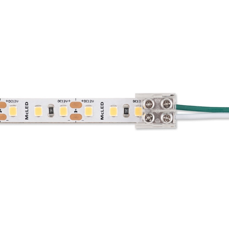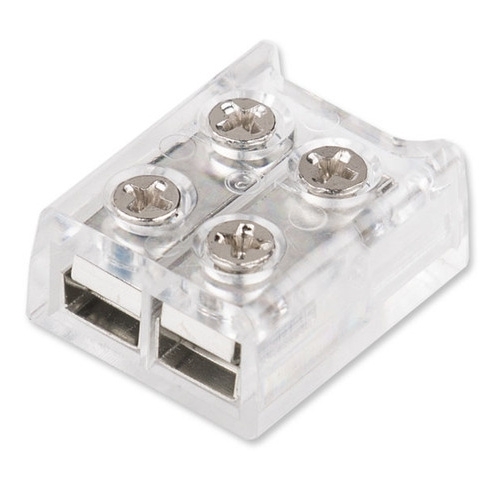 Připojovací konektor jednobarevných LED pásků šíře 8 mm, 2 piny. Konektor využijete ke snadnému propojení LED pásků s kabelem - pro vodiče 16 - 22 AWG (cca 0,34-1,3 mm²). Konektor lze použít na LED pásky COB a také SMD (SMD max. 180 LED/m). Pásek a vodiče se zasunou do konektoru a utáhnou se šrouby. Vhodné pro max. proud 6 A, pro větší proudy je třeba vodiče k LED pásku připájet. Rozměry: 11,5 (š) x 13,3 (d) x 6,4 (v) mm.