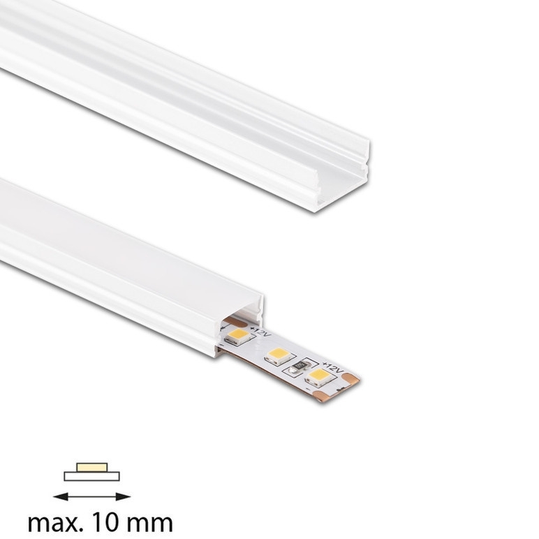 Přisazený hliníkový profil PM bílý 12x7mm, včetně mléčného difuzoru, 1m