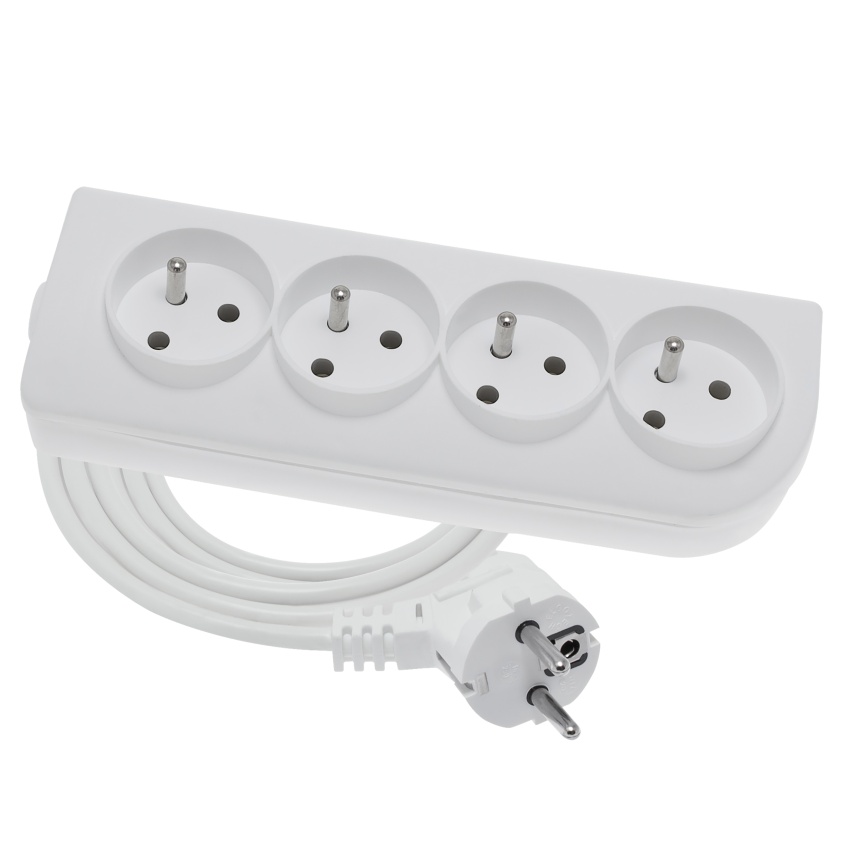 Prodlužovací přívod, 3x zásuvka 2p+Z, 250V, 16A, kabel H05VV-F 3x1,5mm, IP20, barva bílá, délka 3m.