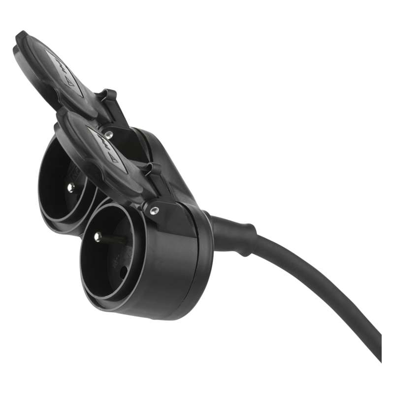 Venkovní prodlužovací kabel 10 m / 2 zásuvky / černý / guma / 230 V / 1,5 mm2