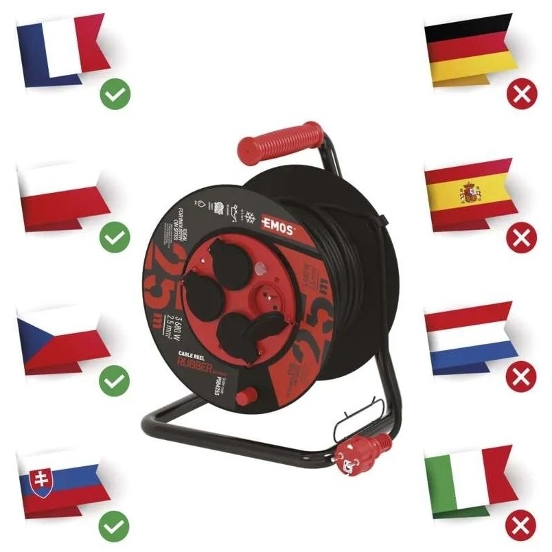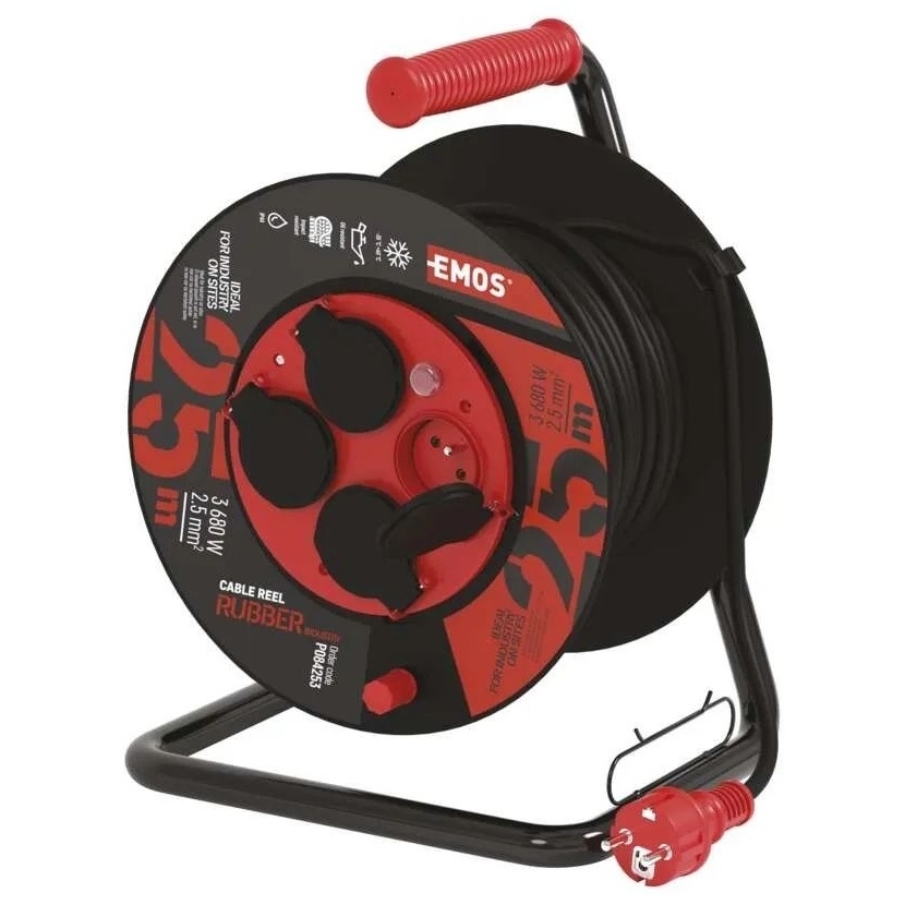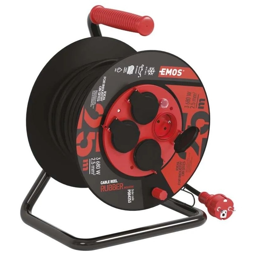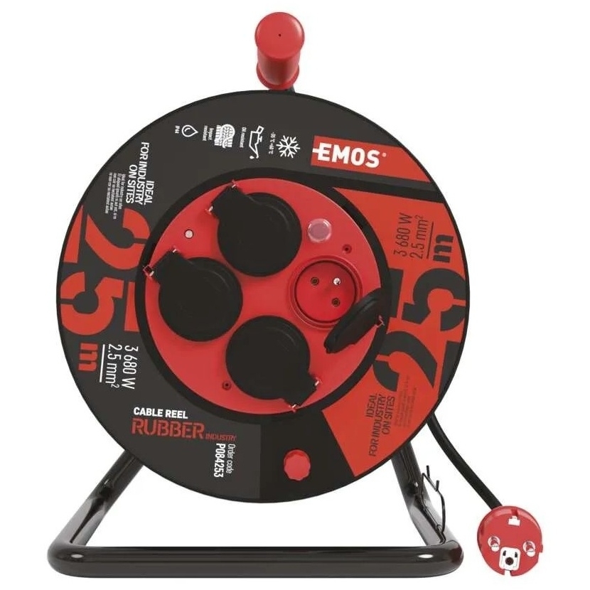 EMOS Venkovní prodlužovací kabel na bubnu 25 m / 4 zás. / černý / guma-neopren / 230V / 2,5 mm2
