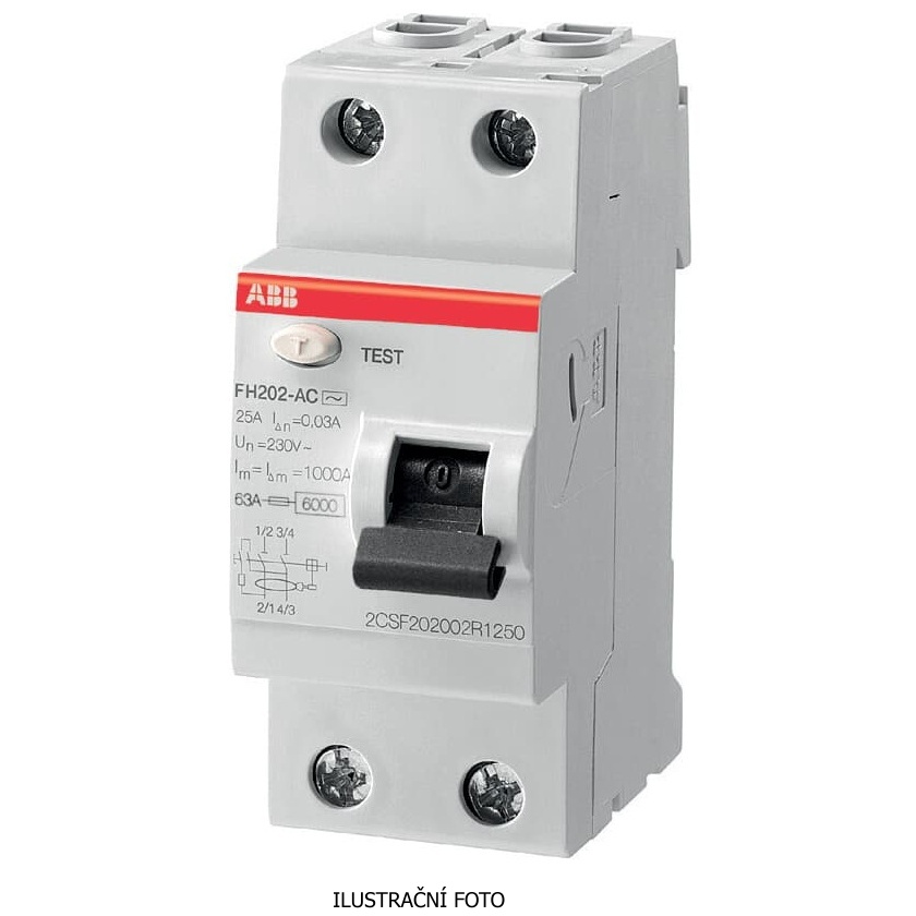 FH202AC-40/0,03 Proudový chránič, 2P, 40A, 30 mA, 6kA, typ: AC ABB 2CSF202002R1400