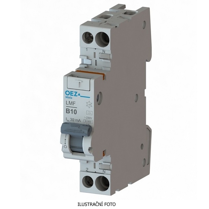 In 16 A, Ue AC 230 V, charakteristika B, Idn 30 mA, 1+N-pól, šířka 1 modul, Icn 6 kA, typ A