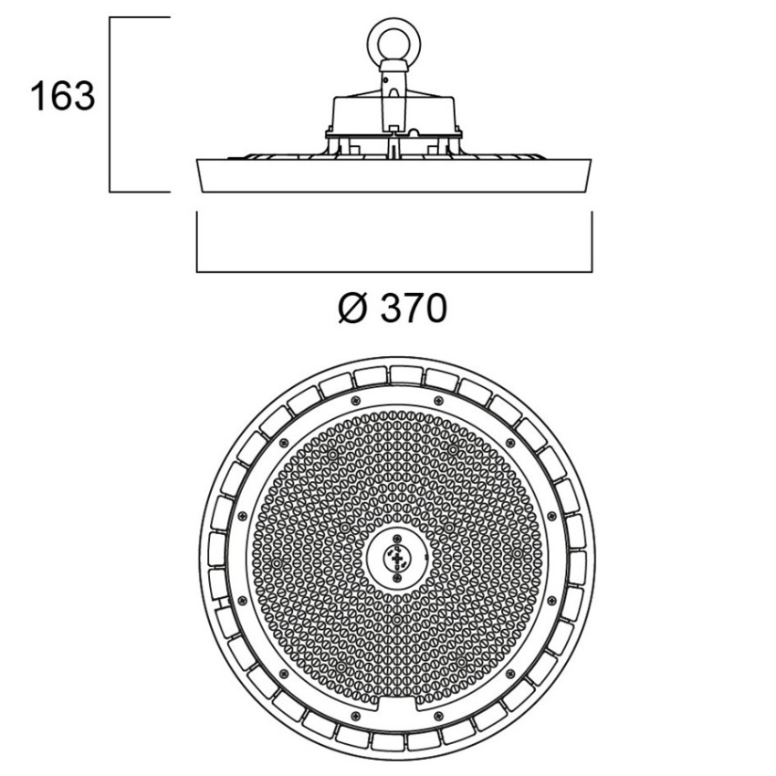 Granit IP65 DALI 32000 lm 840 WB - Integrovaný LED výškový prostor; Černé hliníkové pouzdro; 32000 lm; 200 W; 160 Lm/W; 4000 K; Hnací proud: 780 mA; CRI 80; úhel paprsku 85°; DALI stmívatelný; IP65; IK08; Životnost L80:B20 92 000 hodin; (D x H) 370 x 163 mm; 1, 5 m síťový kabel; 1, 5 m ovládací kabel; 1, 2 m délka řetězu včetně háčků.
